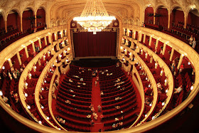 Pero en lo que respecta al edificio de la capital, la que vosotros observáis en la actualidad – una bellísima obra ecléctica (neorrenacentista por fuera, clásica y modernista, por dentro) – fue la restauración del primitivo edificio construido en 1867, edificio que sufrió un incendio en 1896, mientras se representaba la ópera: Eugene Onegin de Tchaikovsky. Enlace al articulo