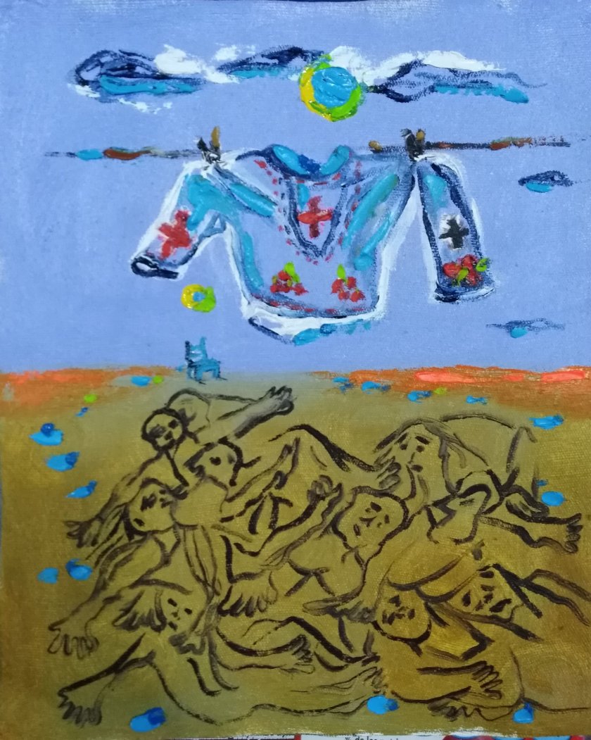 Le tomó a Mariya un poco más de una hora bordar cruces en rojo y negro en la blusa de su hija. Las cruces, en punto de cruz, brillaban bajo la luz del sol.