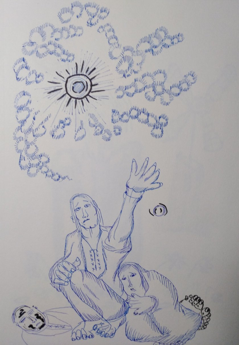 – Nuestro Dios ha mandado sobre nosotros a la Muerte Negra. El número de pecadores ha aumentado y Dios ordenó que todas las personas que no lleven una cruz deben perecer. Los demonios rieron y bailaron y continuaron matando a todos los que no usaran una cruz. A ellos no les importan las almas de los hombres y, si: los justos y los pecadores mueren por igual. Tu has conocido el trabajo de la muerte dentro de tu propia familia. Y te daré un consejo: borda cruces en las mangas, en el faldón y en todos lados. Utiliza colores negros y rojos que los demonios puedan ver de lejos…. Pero, no le digas a nadie, o veras a tu hija perecer frente a tus ojos.