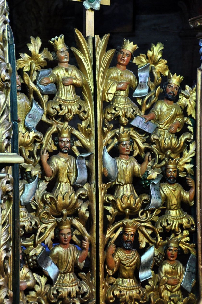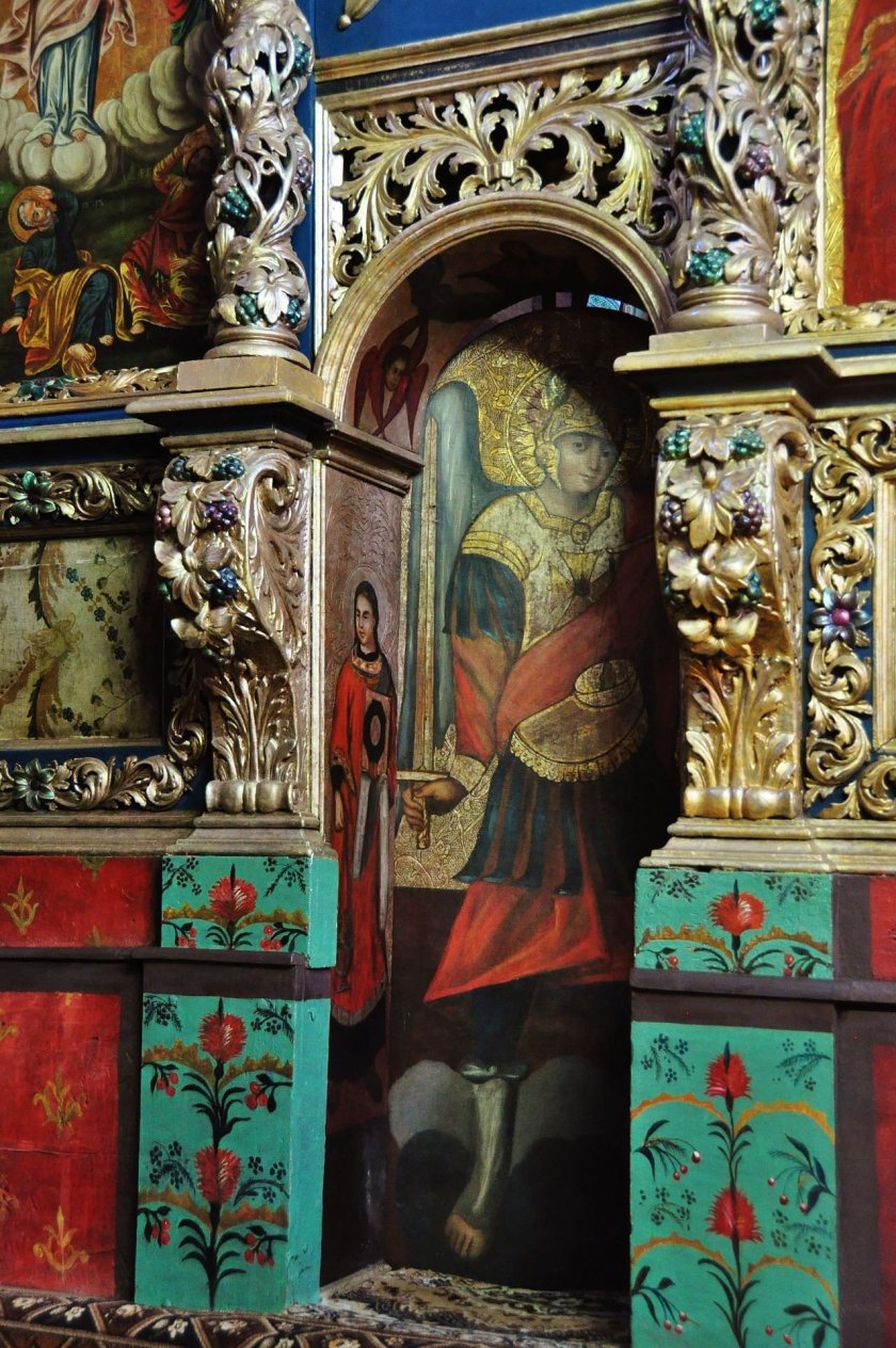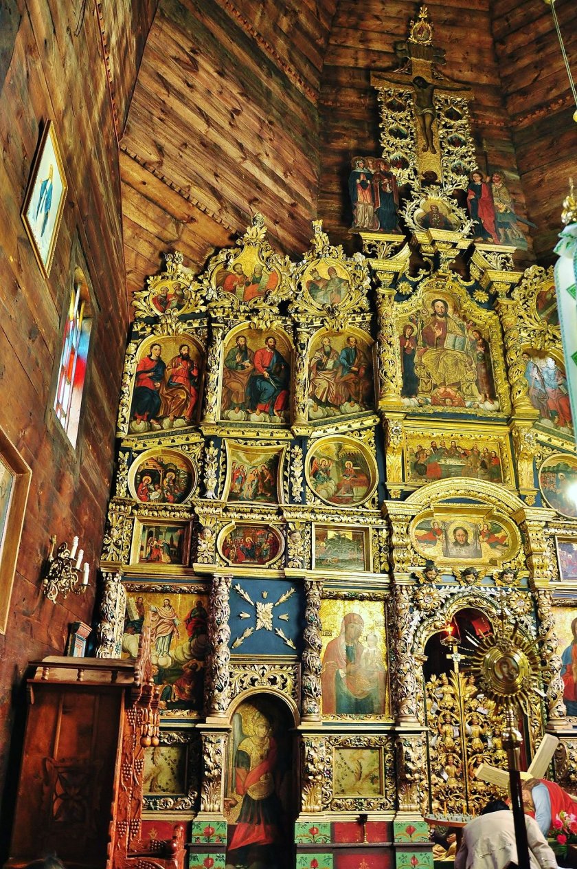 El iconostasio fue hecho por Ivan Rutkovych, importante maestro de Zhovka, que fue sede de la Escuela de Pintura y Tallado de esta ciudad, y muy importante en Ucrania occidental. Consta de 50 iconos religiosos tallados a inicios del siglo XVIII.