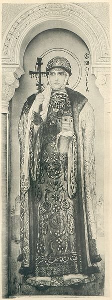 Es muy llamativo el colorido interior, con mosaicos de maestros de Venecia, y frescos creados bajo la guia del profesor Adrian Prakhov a un grupo de renombrados pintores: Wilhelm Kotarbiński, Mijail Nesterov, Mykola Pymonenko, Pavel Svedomsky, Viktor Vasnetsov, Mijail Vrubel, Viktor Zamyraylo (1868-1939), y varios más. La pintura de la Madre de Dios fue realizada por Vasnetsov, y se encuentra en el ábside del altar.La puerta de entrada está adornada con esculturas de bronce de Santa Olga (Santa Olha, reina de Kyiv – enlace), por el escultor Robert Bakh, y de San Volodymyr, por H. Zaieman, contra un fondo azul. El iconostasio está tallado en mármol blanco de Carrara.