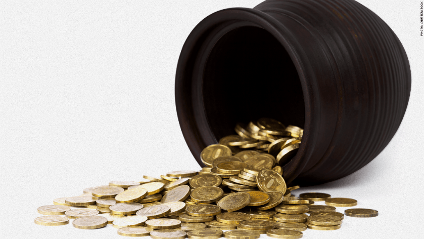 Entonces cavó y cavó, y al final llegó hasta una olla repleta de oro y plata.