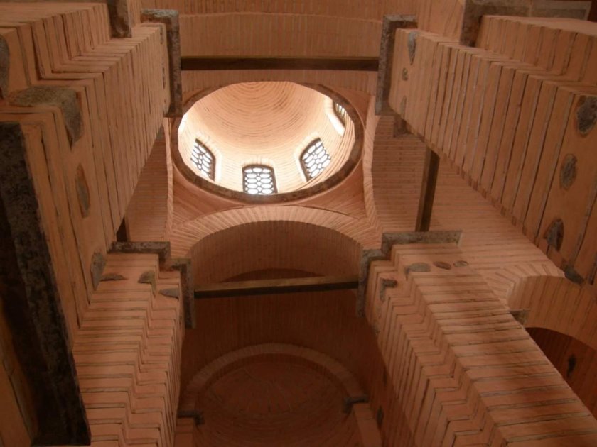 El campanario de la capilla ha sido reproducido en forma de un templo de un solo domo, de tres naves y cuatro pilares. La fachada utiliza ornamentos con el ladrillo típico de los antiguos edificios de esa época. El piso de la iglesia decorado con mosaico, cuya distribución se basa en el diseño del piso de la Catedral de Santa Sofía en Kyiv, típico de la época en la que se construyó también la puerta.