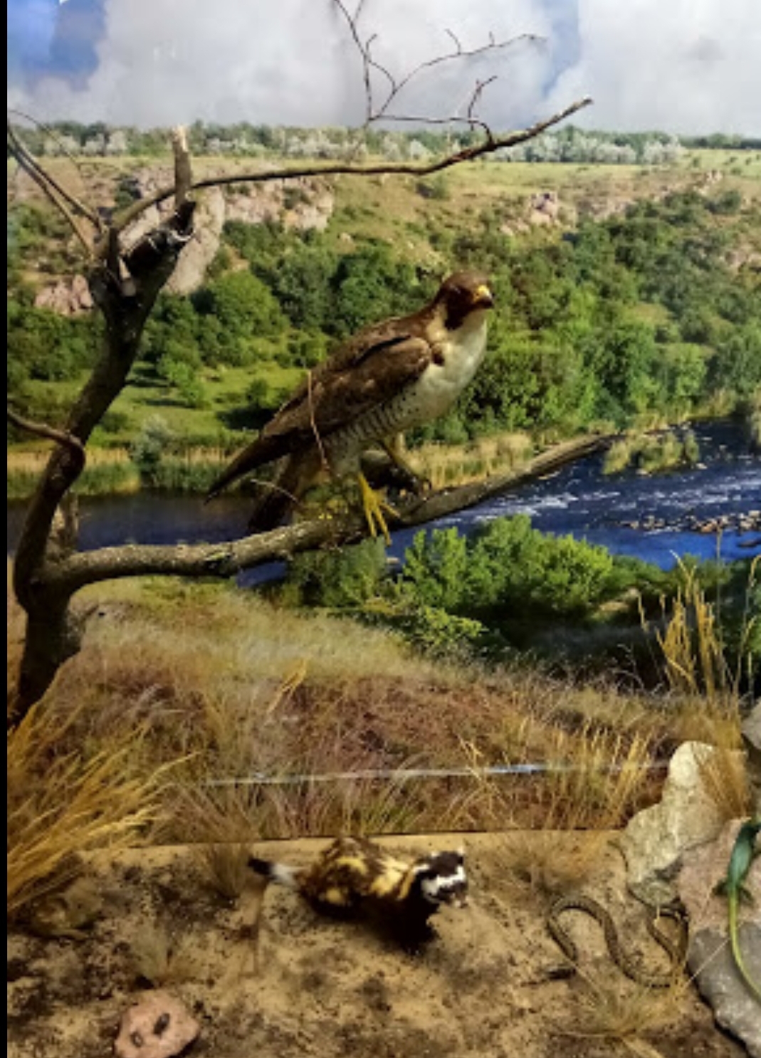 En el siguiente salón hay aves exóticas difíciles de ver en Ucrania, o extintas, ademas de otras especies comunes, con también dioramas que muestran las distintas regiones ecológicas de Ucrania, como la marisma, las tierras boscosas de Polisia, las estepas, la costa subtropical de Crimea y los valles del altiplano de los Cárpatos, aunque además presenta dioramas desérticos y paisajes antárticos.