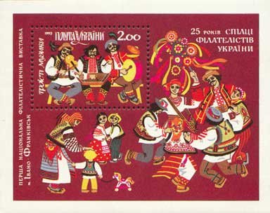 La Troyisti Muzýky es un estilo de grupo musical folclórico que utiliza Violín, Basolia y Pandereta como únicos tres instrumentos (por eso Trinidad), o también pueden ser violín, Tsymbaly y pandereta.Tocaban en fiestas como bodas, y estuvo en auge en el siglo XVII, principios del XVIII, en especial en Ucrania occidental. Esta estampilla está dedicada a Ivano-Frankivsk.