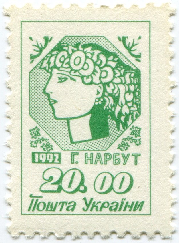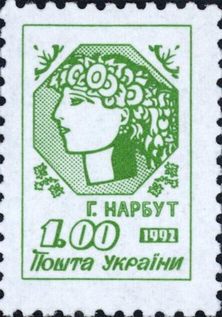 Esta Estampilla Postal de Ucrania del año 1992 fue dedicada a Heorhiy Narbut, de quien podemos leer más aquí.La que presentamos en esta sección fue diseño de Heorhiy, en honor a la República Popular de Ucrania, 1918.