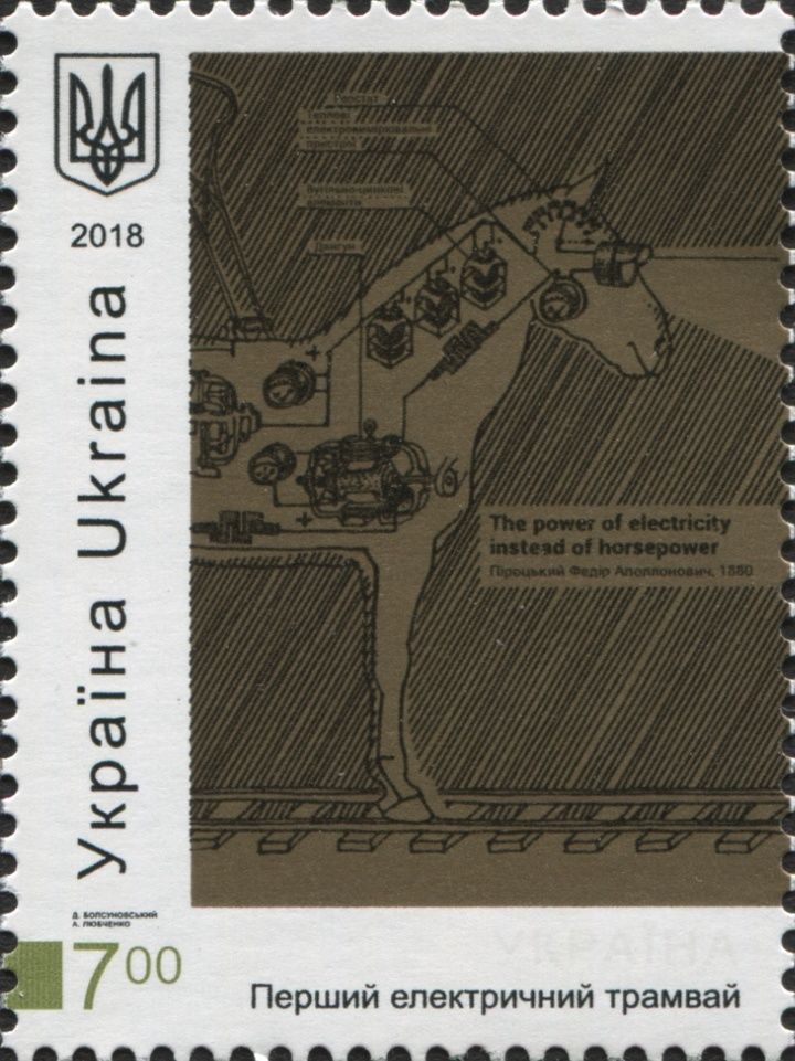 La Estampilla postal de Ucrania Nº 1677 pertenece a la serie “Inventos”, y ésta honra un invento ucraniano: EL TRANVÍA ELÉCTRICO.