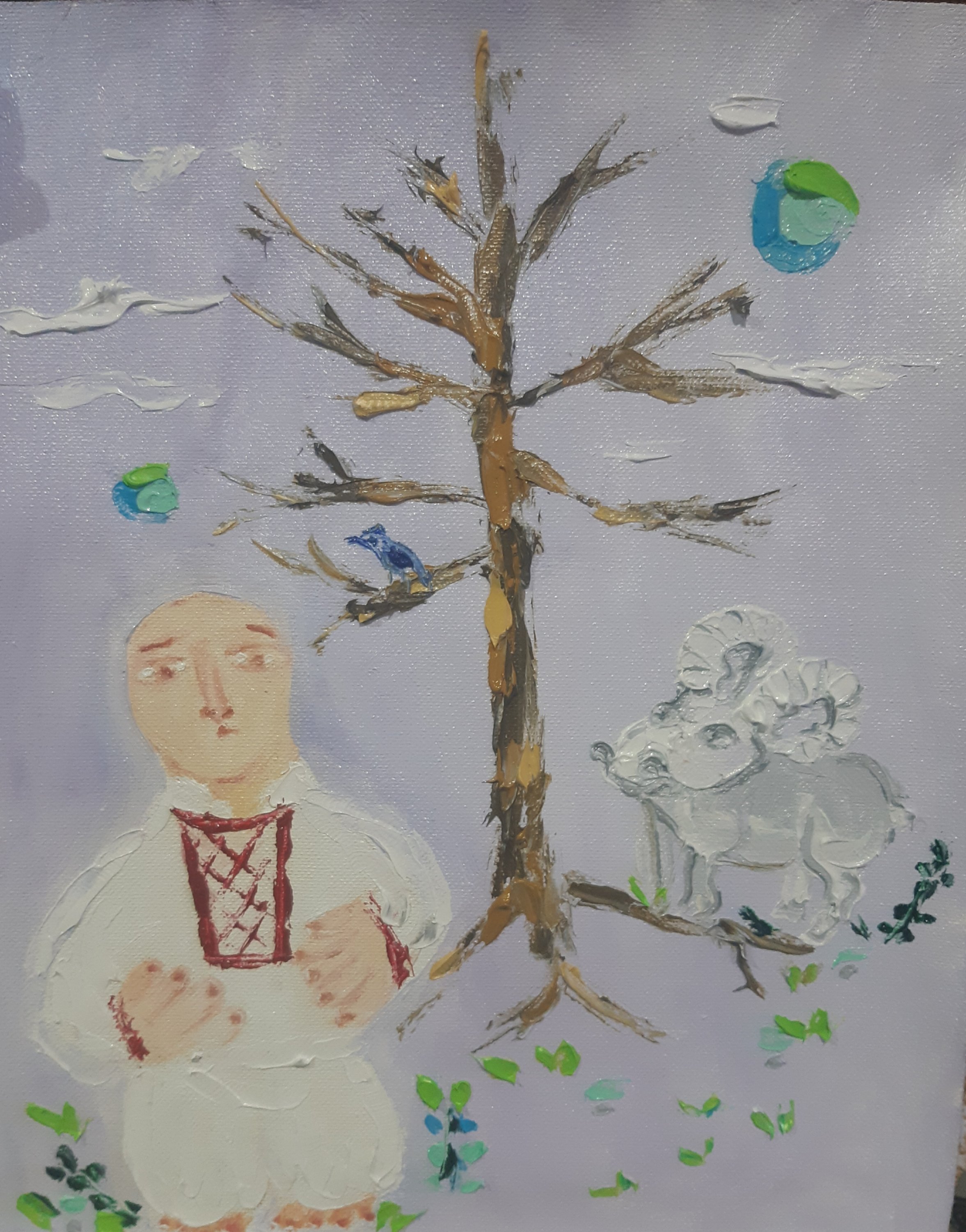 -“¡Ve!“, dijo el arbusto, “ve al fuego, pues los tártaros no matarán a la gente, y la gente no matará al lobo, y el lobo no comerá a la cabra, y la cabra no mordisqueará al arbusto, y el arbusto no columpiará al pequeño gorrión!“.