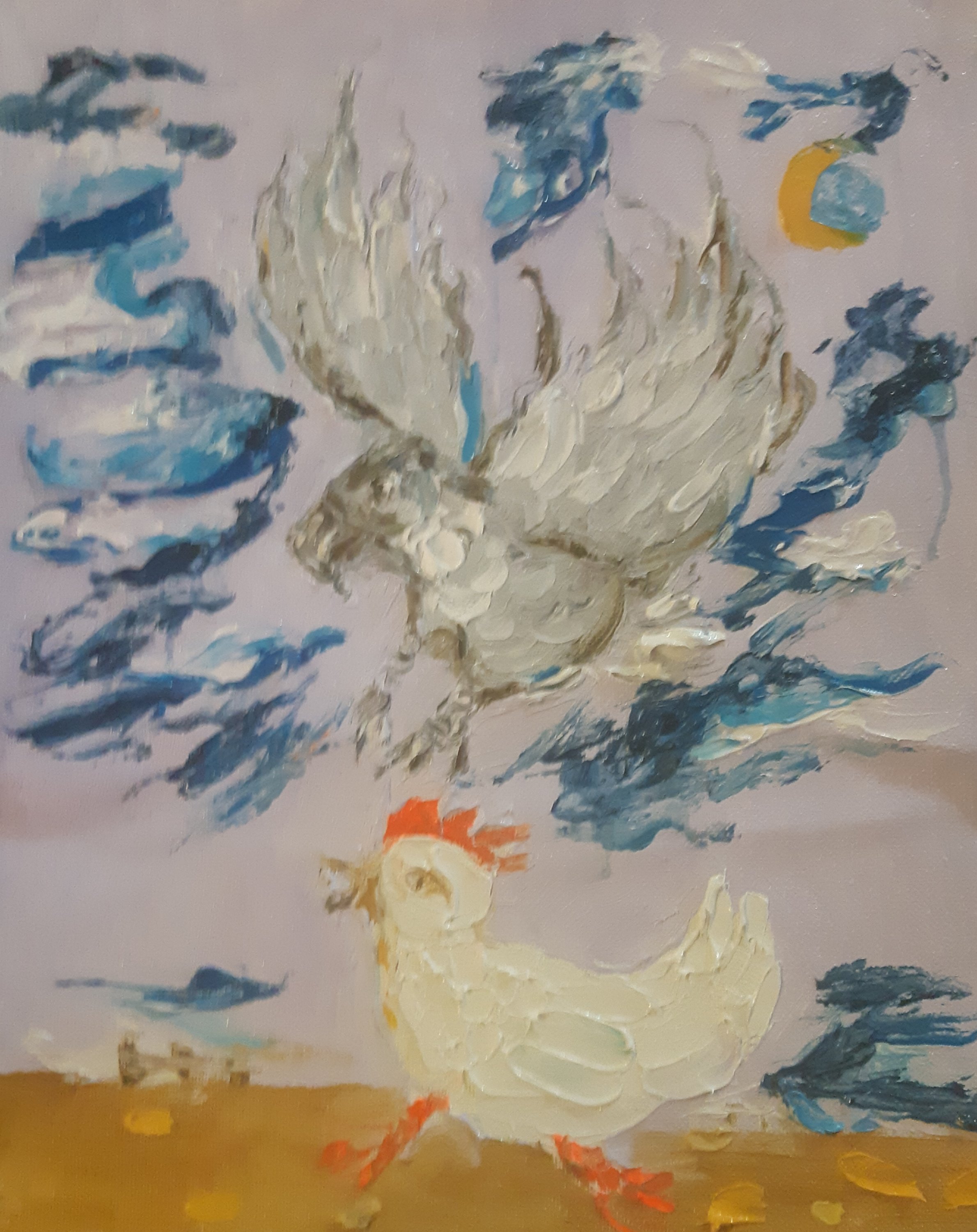 Una leyenda relacionada también con el estilo artístico ucraniano, desarrollado en la aldea de Petrykivka. La leyenda, de amor, nos habla sobre Petro y Oksana, que defienden su aldea de los invasores. Un fuerte amor y lealtad mágica sorprende al cuentista y a gato.