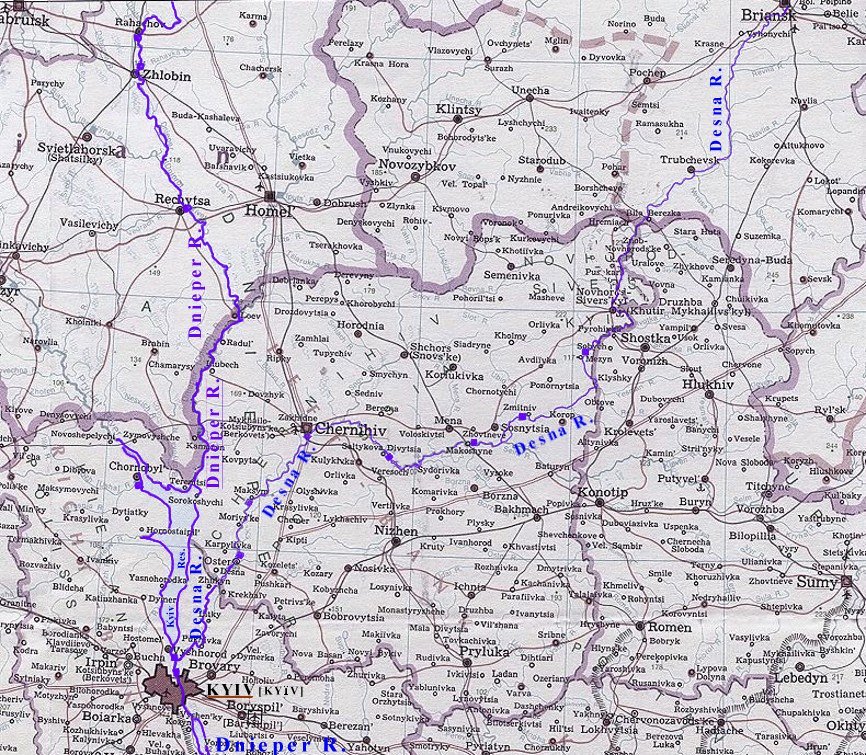El río Desná – десна es el afluente más largo del Dnipró, uniéndose a él a 6 km sobre Kyiv.