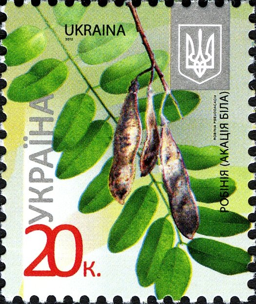 La Robinia pseudoacacia pertenece a la familia de las fabáceas, y en Ucrania se le conoce como Acacia Blanca. Es un árbol de unos 25 metros de altura, con un tronco de hasta 1 m de diámetro. En ocasiones peculiares puede llegar hasta los 50 m de altura. Flores muy frangantes, blancas y en racimos. Este árbol es muy longevo, de flores que las abejas aprovechan para producir bastante miel, madera trabajable en mueblería y ebanistería, y nada exigente en cuanto a suelos, por lo que se utiliza en gran parte para poblar áreas de malas condiciones edafológicas, como pionera.En Ucrania se planta abundantemente, a pesar de provenir del este de los Estados Unidos, sobre todo en bosques de estepa y estepas. Se usa también bastante como ornamental en parques, jardines y plantaciones protectoras a lo largo de carreteras. También es favorita de las granjas apícolas.
