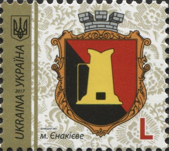La novena edición de estampillas definitivas dedicadas a escudos de armas de ciudades y pueblos de Ucrania, en este caso Yalta, ubicada en Crimea, provincia de Ucrania. Sobre campo rojo y azur, un león de oro con la cabeza volteada, mientras en la parte superior dos ramos, uno de hojas de vid y el otro con hojas de laurel, cruzadas. Coronado con plata y los rayos del sol brillando en el escudo grande. También en el escudo grande, dos caballitos de mar (puesto que Yalta es una ciudad portuaria) sostienen la banda con el lema “Yalta Urbs Meridialis”, que significa “Yalta, capital del sur”