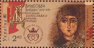 Vysheslava de Kyiv es la tercera en la serie de estampillas postales de las “Reinas de la Rus de Kyiv en tronos extranjeros”.