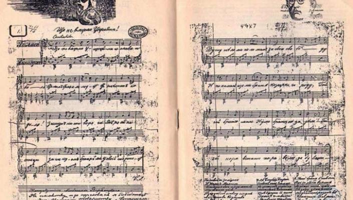 Ой у гаю, при ДунаюСоловей щебече. Він же свою всю пташину До гніздечка кличе. Oyh, en el bosque, frente al Danubio Un ruiseñor se hace escuchar. Él, con toda su existencia A su nido llama. Enlace al articuloDar click en la imagen para acceder al video