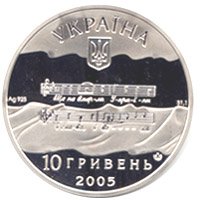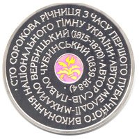 La moneda de plata de 10 hryvnias de plata 92.5% (sterling. 925) fue emitida por el Banco Nacional de Ucrania en 2005, dedicada al 140 aniversario de la interpretación en público del Himno, con música de M. Verbitsky y texto de P,Chubynsky (en la serie Renovación del Espíritu Ucraniano) . Se tiraron 3000 ejemplares. Su precio es de 50 euros