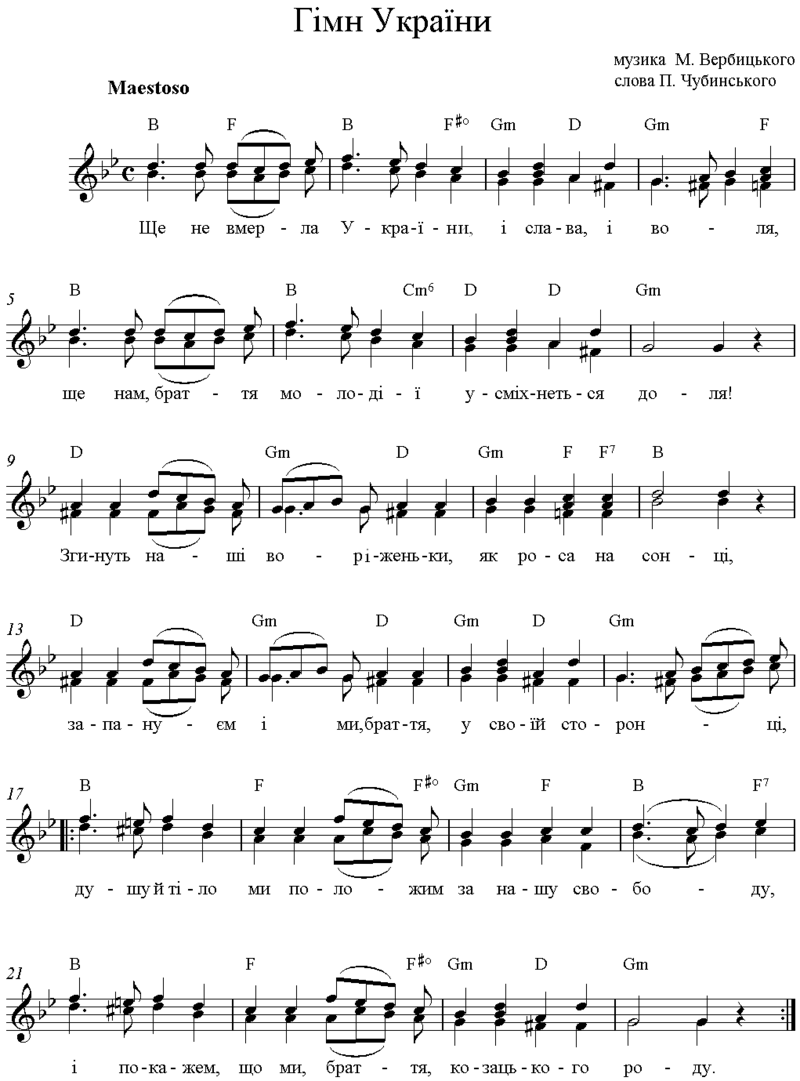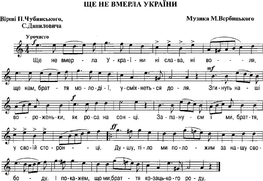 Pero la Constitución lo dice claro: “…el texto completo de P. Chubinsky ” Aún no ha muerto la gloria ni la libertad de Ucrania”sobre la música de M. Verbitsky.”