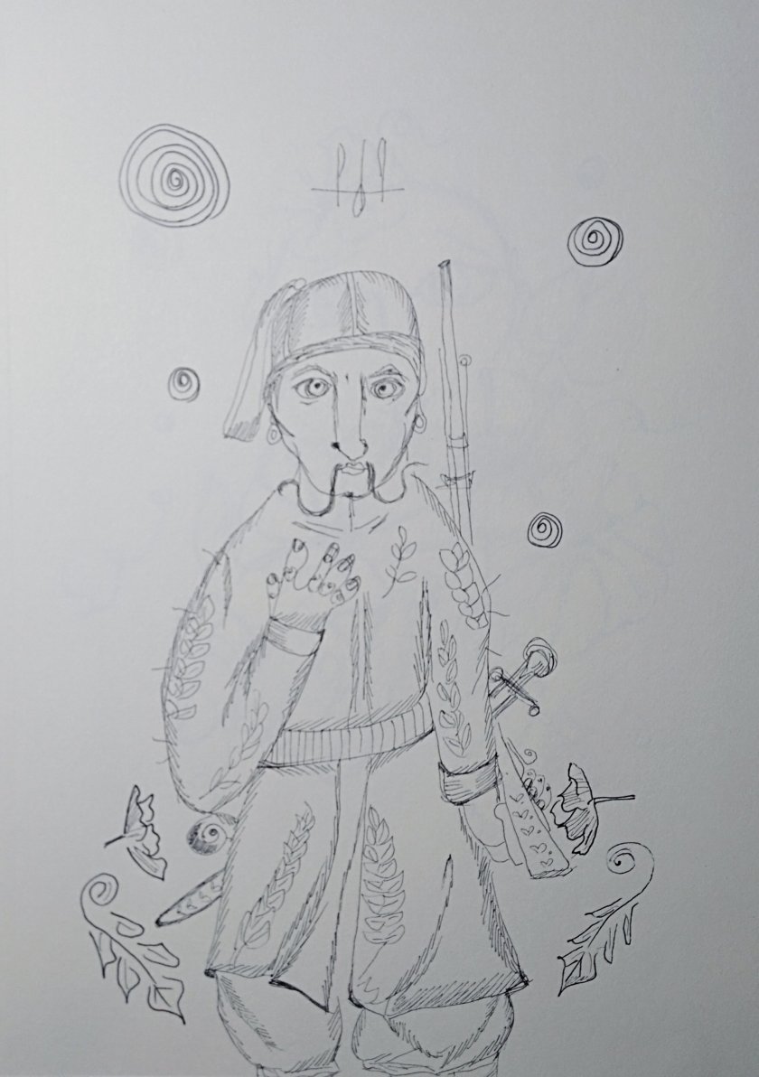 Як я малим збирався навесні Піти у світ незнаними шляхами, Сорочку мати вишила Червоними і чорними Червоними і чорними нитками. Cuando era joven, en una primavera Pensé en ir a buscar mi destino, Mi madre me bordó una camisa Con hilo rojo y negro, Con hilo rojo y negro. Enlace al articuloDar click en la imagen para acceder al video