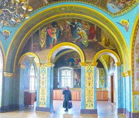 De acuerdo con los cánones, Cristo está en el centro, los apóstoles se encuentran en el domo, y en las alas se representan los cuatro evangelistas. El aire de las pinturas es bizantino pero, paralelo a estas composiciones, nombrando la distribución del pan y el vino a los apóstoles, el signo de la Virgen o la representación de Santa Sofía como la Santa Sabiduría de Dios, se incluyen también algunas del arte occidental, tales como el cordero, la coronación de la Virgen en el trono con ángeles, etc.