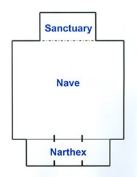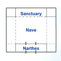 Si existe un campanario, es generalmente una estructura independiente construida cerca pero sin una unión a ella, al lado occidental, cerca del Nartex.