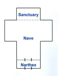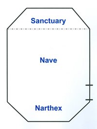 El simbolismo de esta forma rectangular, con ábside y con o sin brazos, es la representación del Arca de Noe, a la que los feligreses se suben para salvarse del diluvio de pecados existentes en su exterior.