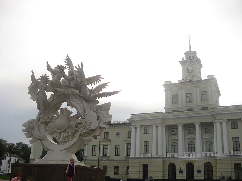Se alza sobre la colina de la universidad a la orilla del rio Lopan, y domina todo el centro de la ciudad. Su campanario neoclásico fue consteuido en la década de 1820 y tiene una altura de 90 mt;fue el edificio más alto de esta ciudad hasta el siglo XXI.La Iglesia de la Dormición original había sido construida en la fortaleza de Jàrkiv en la década de 1680, y fue totalmente reconstruida tras su destrucción por un incendio, a un estilo barroco tardío. Fue consagrada en 1780.