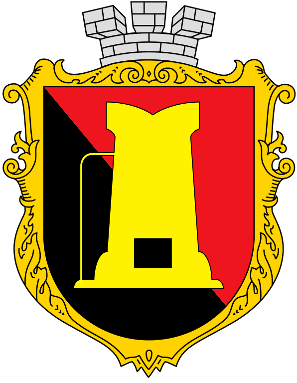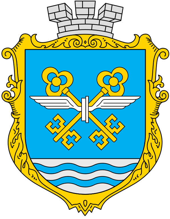 Sobre campo rojo y dorado, el escudo tiene una vid dorada y un delfín negro. La vid es el cultivo milenario de esta región, mientras que el delfín fue establecido en relación a la reserva arqueológica Olbia, u Olbia Póntica, sobre el estuario del Buh del sur.
