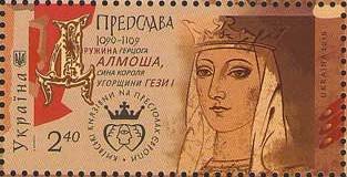 Vysheslava de Kyiv es la tercera en la serie de estampillas postales de las “Reinas de la Rus de Kyiv en tronos extranjeros”.