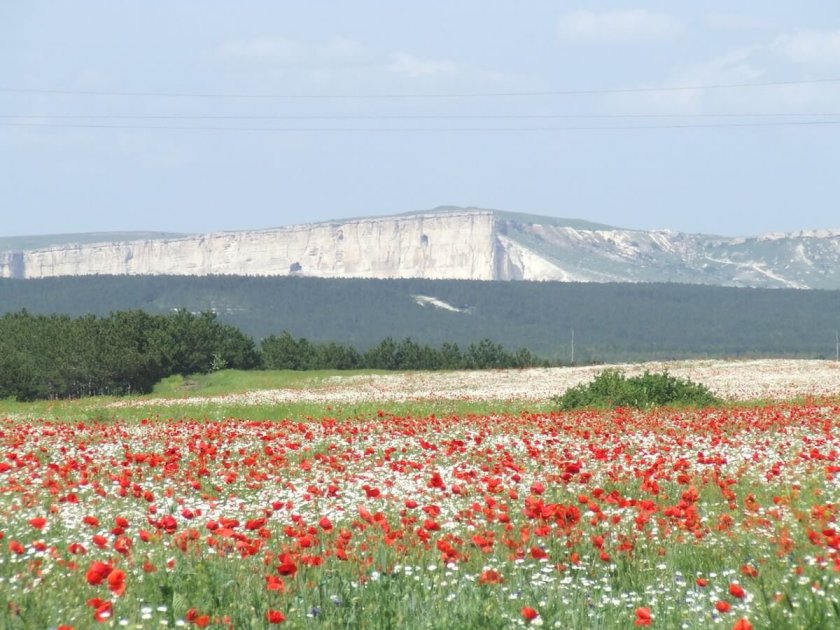 La geografía de Crimea se divide en dos partes: la semi árida, estepa sin árboles de las tierras bajas en el norte, y las montañas crimeanas en el sur. La primera es una continuación de la estepa póntica del continente.