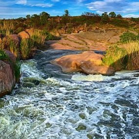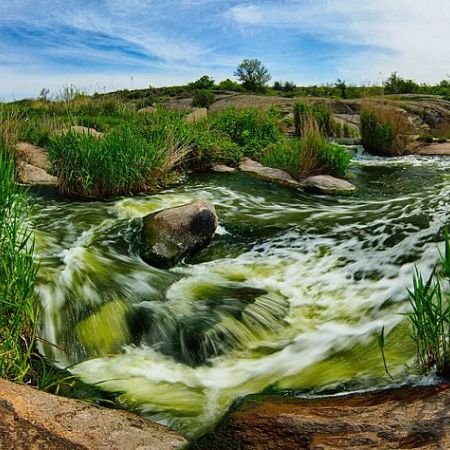La cascada Tokivske del rio Kamianka (afluente del Bazavluk). Se localiza cerca de la aldea de Tokivske en el municipio de Apostolove, Provincia de Dnipropetrovsk.