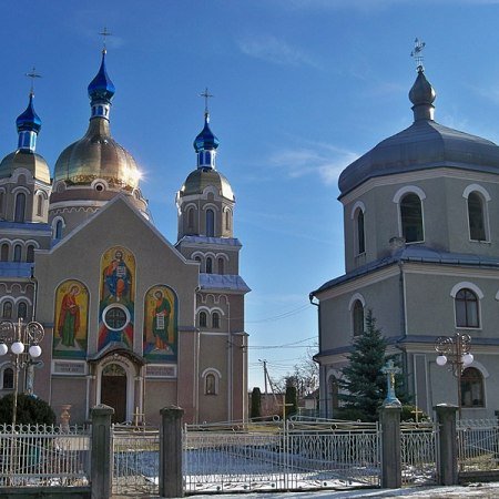 El parque Schevchenko en el medio de la ciudadLa iglesia de las Miroforas en Bolejiv