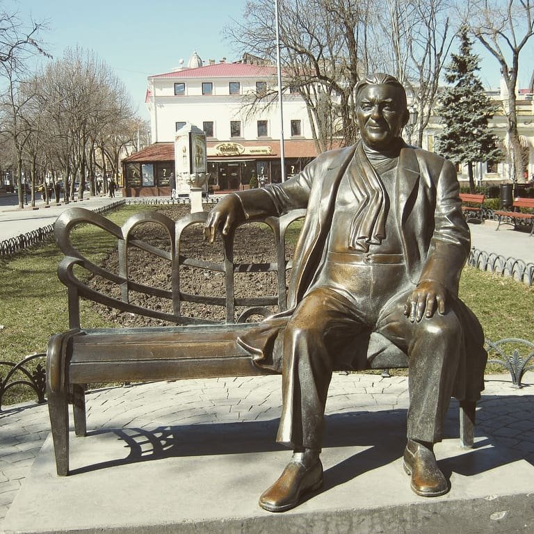 En la foto el monumento que está al frente es de Leonid Utyosov, cómico y cantante de Jazz ucraniano.