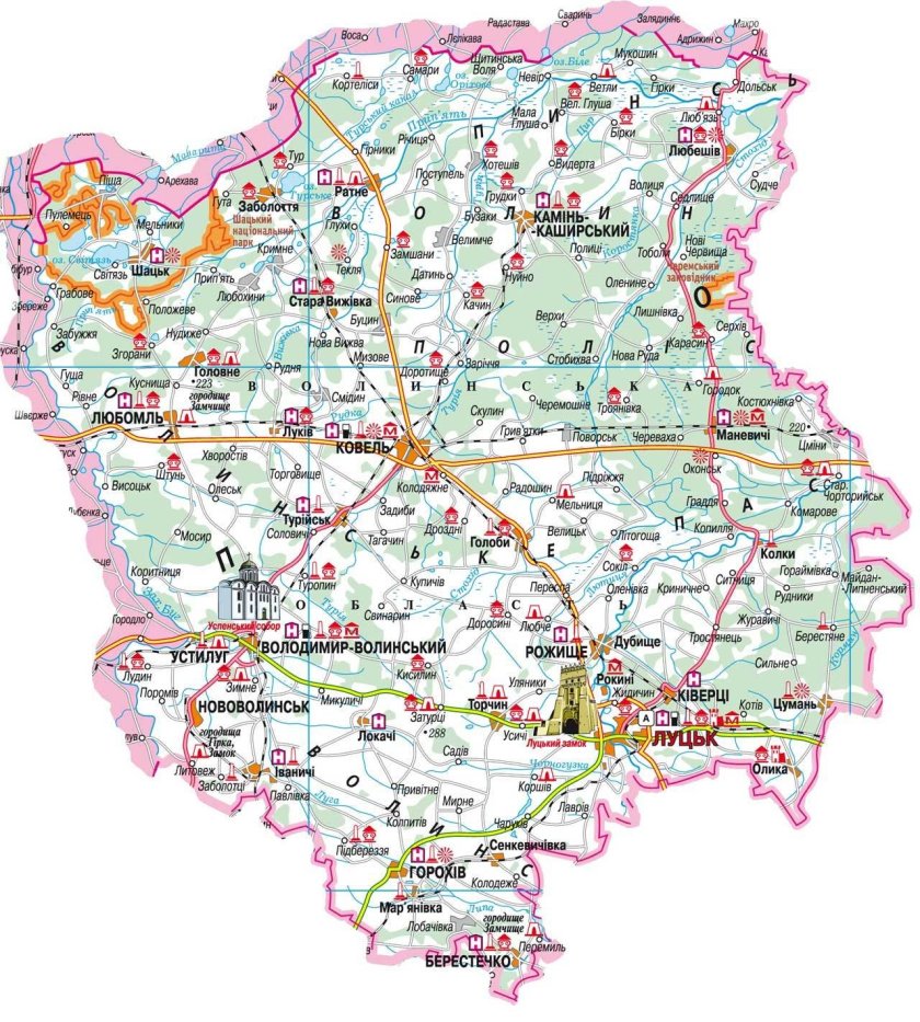 Aguas minerales, lagos, rios, bosques, lodo medicinal, pesca y condiciones ideales para el desarrollo del turismo, cada año, la región de Volyn es anfitriona de varios festivales artísticos, como “Verano en Polissia con folclore”, “Misterio de Navidad”, “Sobre las olas del Svitiaz”.