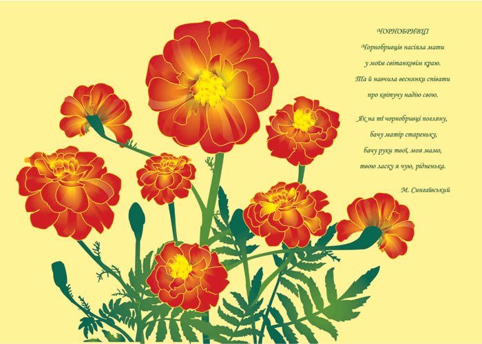 Я розлуки і зустрічі знаю. Бачив я і в чужій стороні чорнобривці із рідного краю, що насіяла ти навесні. М. Сингаївський
